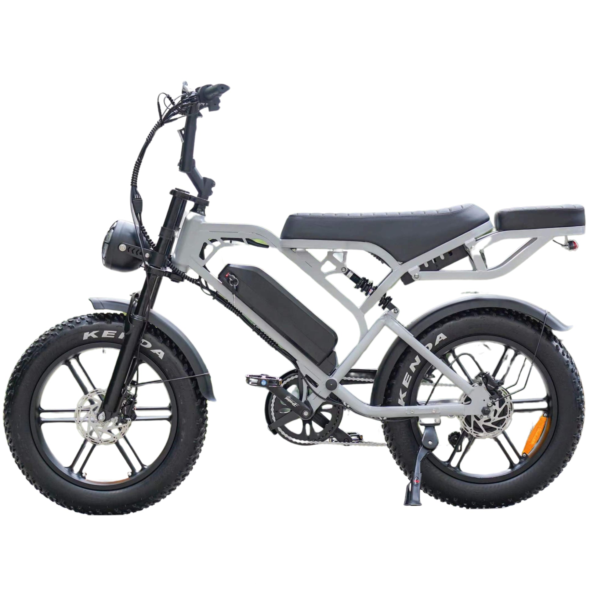 Geniet van gezamenlijke avonturen met de V20 Fatbike, die geschikt is voor twee personen na uitbreiding met achterzit. Ervaar het plezier van het ontdekken van nieuwe paden en maak van elke rit een onvergetelijk avontuur. De Fatbike is veelzijdig en krachtig, klaar om je mee te nemen op avontuur, zonder concessies te doen aan stijl en prestatie